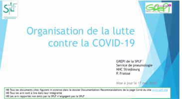 Dernière Mise à jour du 17 mai 2020 par le groupe GREPI de la SPLF, sous la coordination du Pr P. Fraisse du service de Pneumologie du NHC Strasbourg.