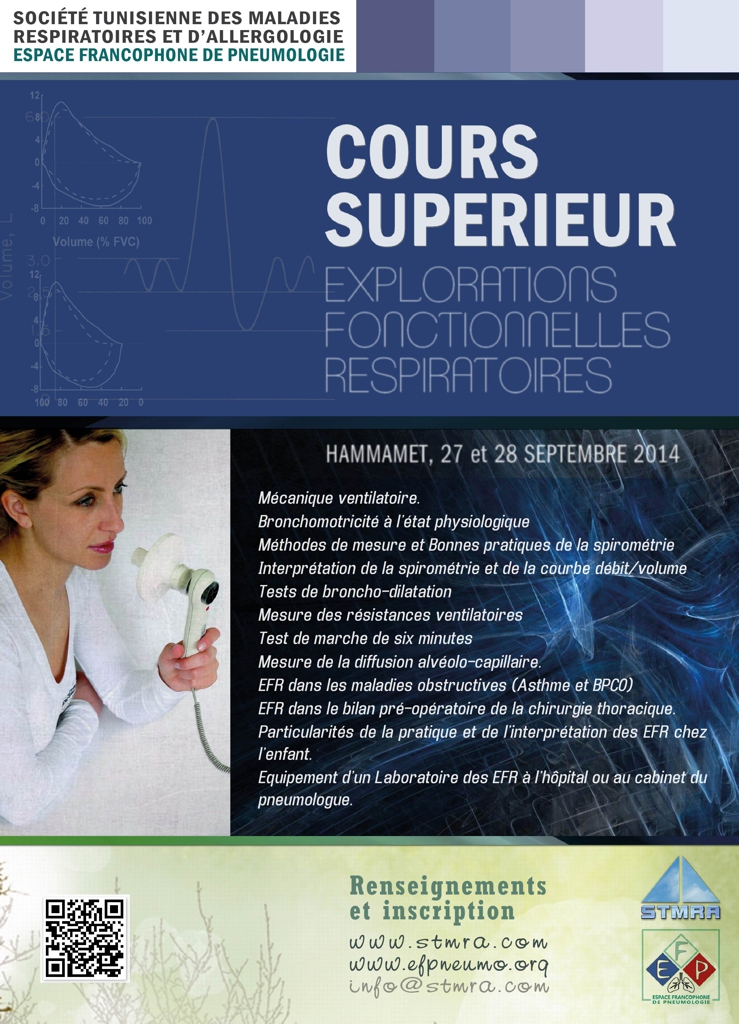 L'Espace Francophone de pneumologie (EFP) organise conjointement avec la STMRA un cours supérieur sur les explorations fonctionnelles respiratoires.